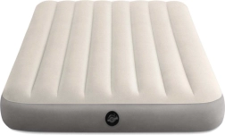Le matelas pneumatique double Intex, avec une surface veloutée douce et imperméable, offre un couchage stable et confortable à la maison, au chalet ou en déplacement. La structure interne avec renforts Dura‑Beam Fiber répartit la pression uniformément et soutient une bonne position de la colonne vertébrale pour un sommeil paisible et sain.