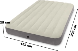 Le matelas gonflable double INTEX aux dimensions 203 × 152 × 25 cm est idéal pour la maison comme pour le camping. Il possède une surface en velours agréable, une valve Boston rapide pour un gonflage et un dégonflage faciles, ainsi qu’une technologie interne Dura-Beam Fiber pour un meilleur soutien du corps. Une rustine de réparation est incluse.
