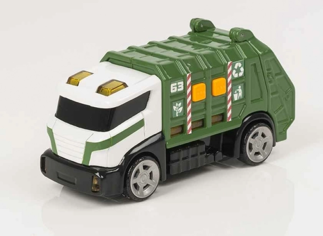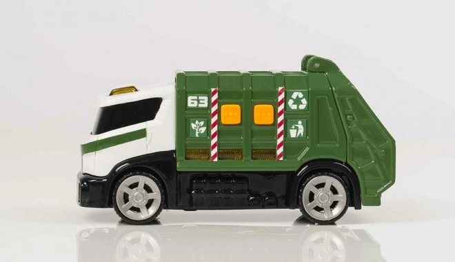 Découvrez l’univers du nettoyage urbain avec le camion benne Teamsterz avec lumière et son. Son design vert et blanc orné de symboles de recyclage, sa cabine détaillée et ses éléments réalistes raviront tous les petits amateurs de véhicules utilitaires. Le bouton Try Me déclenche des lumières clignotantes et des sons authentiques, rendant le jeu encore plus réaliste.