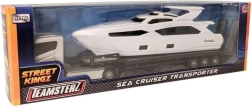 Le camion avec bateau Teamsterz offre aux enfants un double plaisir : transport routier et aventures sur l’eau. Le camion réaliste en combinaison blanc‑orange transporte un bateau sur une remorque, ce qui stimule l’imagination et le jeu narratif.
