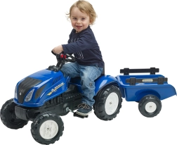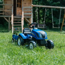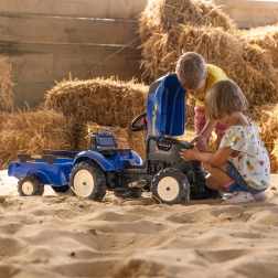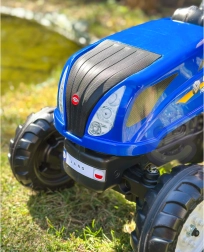 Inspiré des véritables machines NEW HOLLAND, ce tracteur à pédales offre aux enfants une expérience de conduite réaliste. Grâce au capot ouvrant avec imitation de moteur, les petits conducteurs peuvent explorer « l’intérieur » de la machine, tandis que la transmission par chaîne sur l’essieu arrière assure une conduite fluide. La remorque amovible est idéale pour transporter des jouets ou de petits chargements au jardin.
