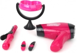 Transformez la chambre en petit salon de coiffure. Ce set de jeu avec sèche-cheveux pour enfants et accessoires roses est idéal pour les premières tentatives de coiffage des poupées comme des membres de la famille. Les enfants s’amusent avec un jeu réaliste et développent leur imagination.