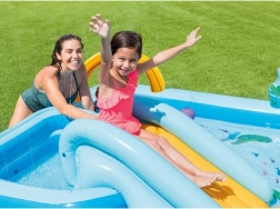 Transformez votre jardin en un monde aquatique ludique avec le centre de jeux INTEX. La large glissade avec tapis souple assure un atterrissage doux et sécurisé, tandis que le bassin peu profond et la plus grande piscine offrent de la fraîcheur lors des journées chaudes. La fontaine intégrée avec réglage du débit d’eau ajoute une nouvelle dimension au jeu.