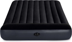 Le matelas gonflable INTEX est recouvert d'une matière veloutée agréable et est résistant à l'eau. Il est équipé d'une valve de Boston qui permet un dégonflage rapide et un rangement facile.