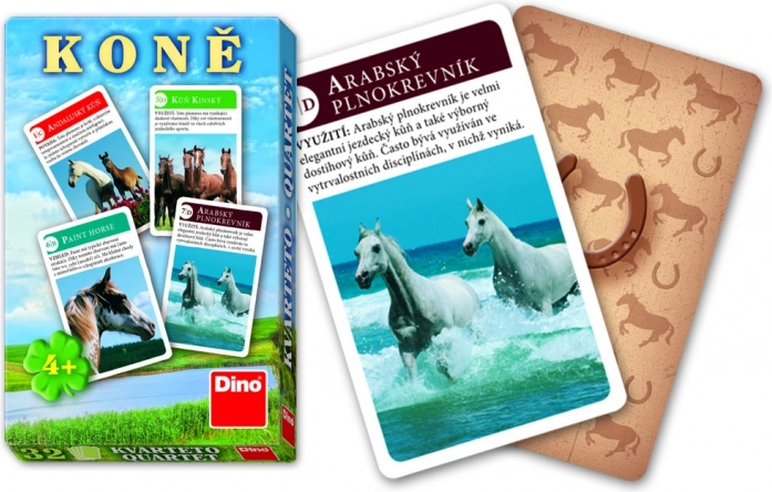 Quartet Chevaux DINO – 32 cartes illustrées sur les races de chevaux. Jeu familial amusant pour 3 à 6 joueurs, règles simples, fabrication tchèque.