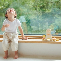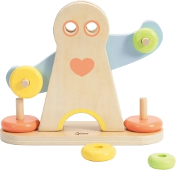 Les enfants déplacent les anneaux le long des bras de la figurine et observent comment l'équilibre évolue. Ils comprennent naturellement la différence entre léger et lourd et entraînent leur raisonnement logique.