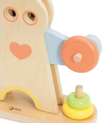 Le jouet est fabriqué en bois naturel de qualité avec des bords lisses et des peintures à base d'eau. Les éléments pastel sont attrayants pour les enfants et en même temps intemporels.