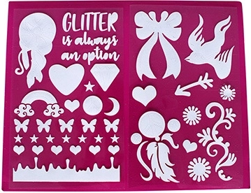 Découvrez la magie du Studio scintillant Glitterific, qui vous permet de créer de magnifiques tatouages et décorations éclatants. À l’aide du stylo spécial et des pochoirs, vous pouvez réaliser différentes formes et appliquer les paillettes avec une précision maximale.