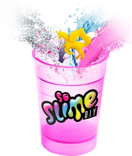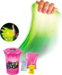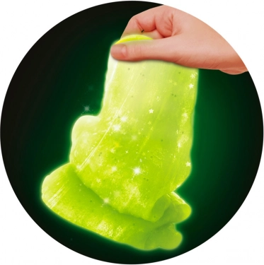 Fabrique ton propre slime. Verse la poudre dans le gobelet, ajoute des paillettes et une figurine. Ajoute de l’eau jusqu’au repère, ferme le gobelet et secoue bien le mélange. Ouvre ensuite le gobelet et attends cinq minutes. Le slime est prêt. Combine les couleurs, ajoute des paillettes et profite d’un vrai moment de plaisir avec le slime. Brille dans le noir. Pour les enfants à partir de 6 ans.