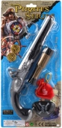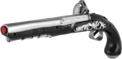 Pistolet jouet décoratif avec gravures et embout rouge visible pour un jeu en toute sécurité, apportant du style à chaque mission de pirate.