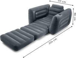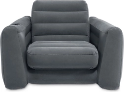 Un fauteuil gonflable confortable et compact offrant un agréable siège avec un porte-gobelet intégré dans l'accoudoir. Idéal pour se détendre après une journée chargée.