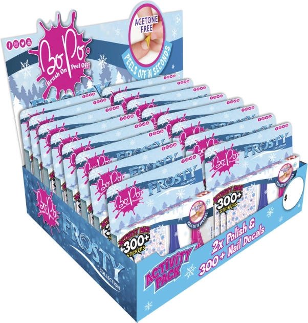 Bo-Po Royaume de Glace apporte une révolution dans la manucure pour enfants. Plus de dissolvants chimiques ! Ce vernis sans acétone s'applique facilement et une fois sec, vous pouvez simplement le peler pour essayer immédiatement une nouvelle couleur éclatante.