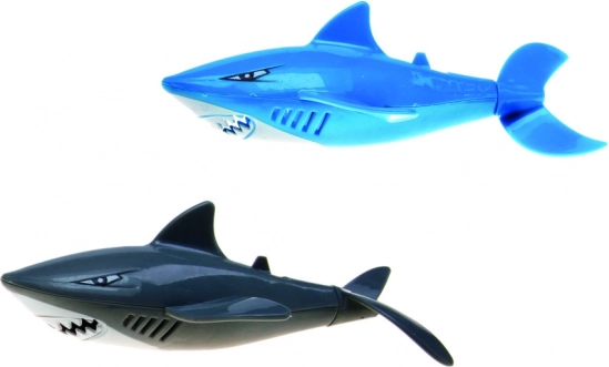 Le jouet est disponible en deux versions: bleu et noir. Les deux requins ont des queues mobiles pour un jeu aquatique amusant.