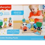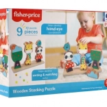 Ce jouet empilable en bois éducatif de la marque Fisher-Price est idéal pour les enfants dès 2 ans, contenant 9 pièces colorées pour développer la créativité et la motricité fine.