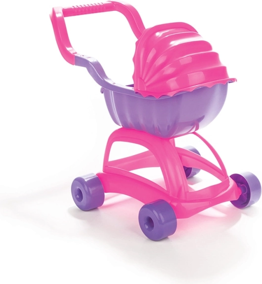 Poussette en plastique avec capote pour petites filles, très légère et facile à assembler. Elle répond aux strictes normes européennes et est fabriquée en matériau non nocif pour la santé.