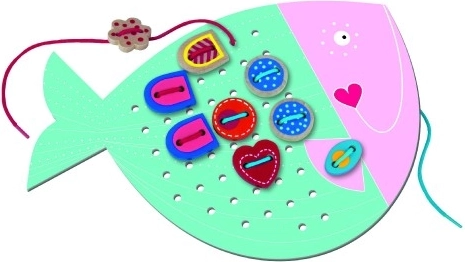 Poisson coloré qui encourage la créativité des enfants et le bon maintien des lacets lors de la couture.