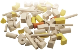 Jeu de construction revisité composé de pièces en bois de différentes formes et tailles dans des couleurs attrayantes jaune et orange. Contient 96 pièces permettant de construire des structures impressionnantes.