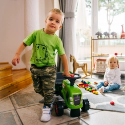 Ce mignon tracteur vert – une draisienne pour les tout-petits – est fabriqué en plastique de qualité et est stable et sûr pour les premières tentatives de conduite. Grâce à ses dimensions compactes et à son faible poids, il est facile à manier, tandis que l’essieu avant pivotant et le volant avec klaxon garantissent des moments de jeu amusants.