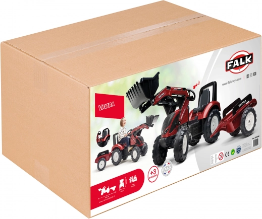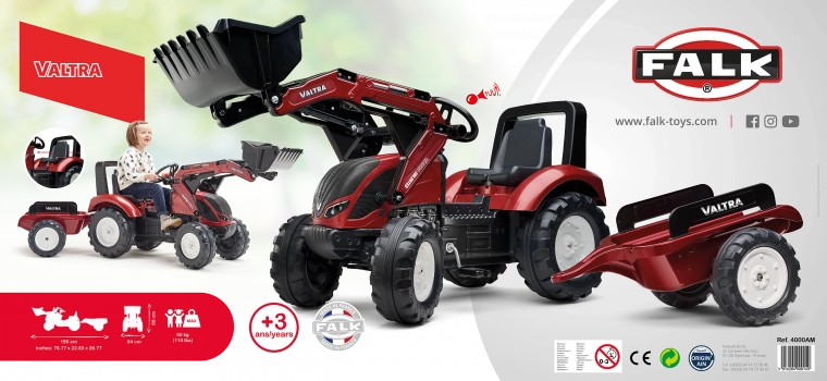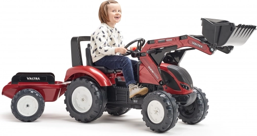 Le tracteur à pédales VALTRA de la marque FALK ravira chaque petit fermier. Il offre une pelle frontale fonctionnelle pour le chargement, une remorque amovible pour transporter des jouets et un klaxon sur le volant. Grâce à la transmission par chaîne, à une construction stable et à des roues en plastique résistantes, il est idéal pour jouer dehors et développer la motricité et la coordination.