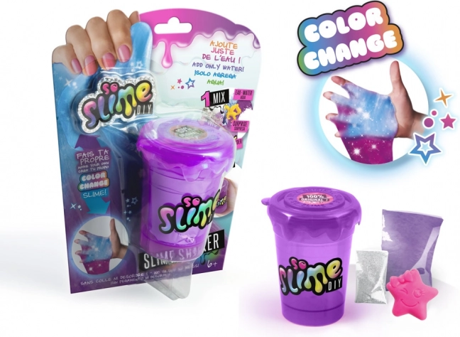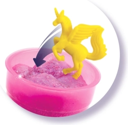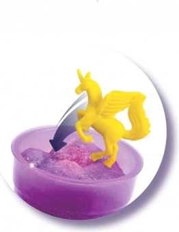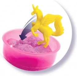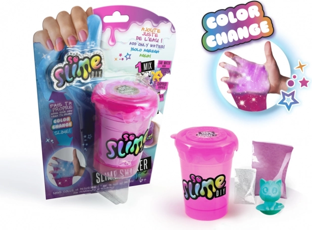 Créez votre slime en quelques minutes grâce à une méthode simple. Versez la poudre, ajoutez de l’eau, des paillettes et une figurine. Secouez et regardez le slime changer de couleur.