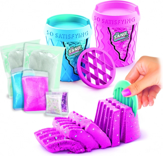 Découvrez la joie de la création avec le sable magique So Sand. Ce kit vous permet de produire votre propre sable en ajoutant le gel magique. Vous pouvez le couper, le modeler et créer des motifs complexes.