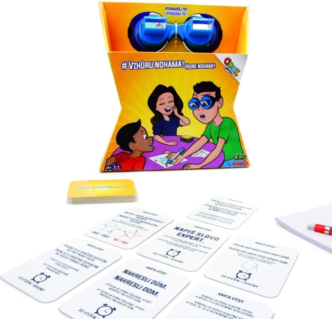 - 1 paire de lunettes, 1 bloc à dessin, 25 cartes avec consignes, 5 cartes pour vos propres consignes