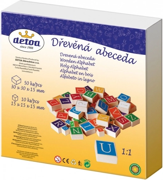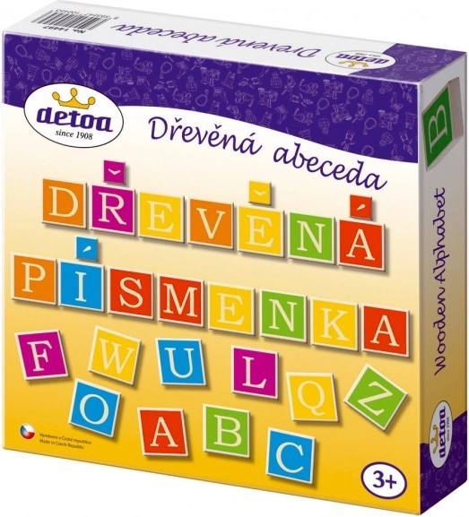 Alphabet en bois de la marque Detoa est un jouet éducatif pour les enfants à partir de 3 ans, qui aide à la reconnaissance des lettres et à la formation des premiers mots. Il soutient le développement de la motricité fine des mains.