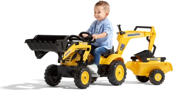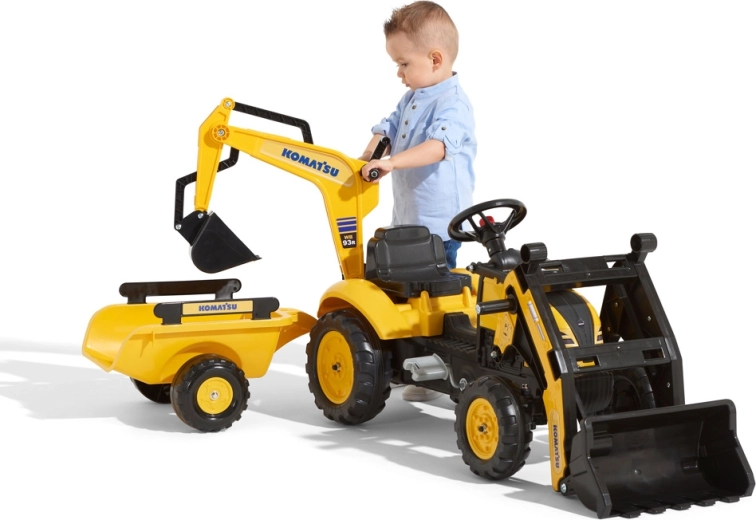 Tracteur à pédales Komatsu avec godet avant et arrière et benne