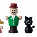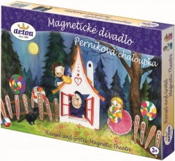 Le théâtre comprend cinq personnages (Hansel, Gretel, la sorcière, le papa et le chat) qui se déplacent sur la scène grâce aux baguettes magnétiques glissées sous le décor. Les décors peuvent être échangés à volonté pour créer de nouveaux environnements – de la forêt sombre à la maisonnette accueillante.