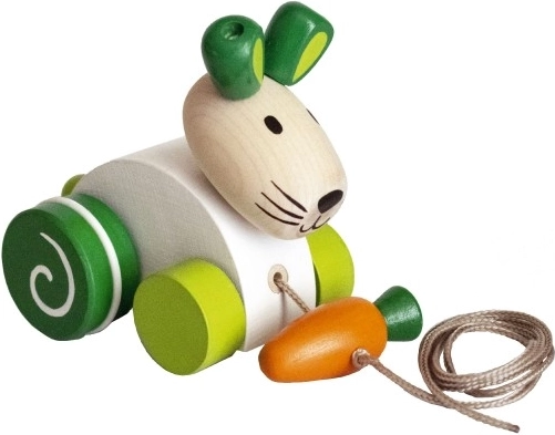 Adorable lapin à tirer en bois de qualité, compagnon idéal pour les premiers pas. Il favorise l’équilibre, la coordination et le mouvement naturel. Une carotte sur une ficelle est incluse pour encore plus de plaisir. Conception sûre, matériau résistant et design ludique raviront chaque enfant dès 12 mois.