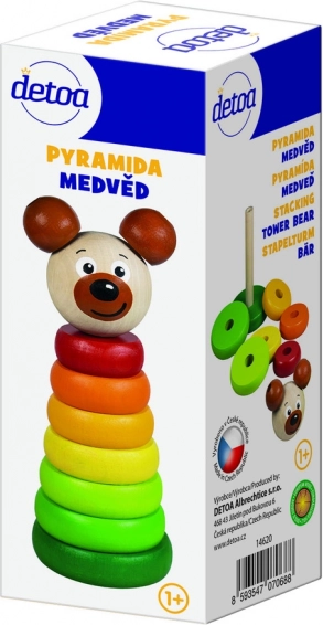 Pyramide empilable traditionnelle en bois avec une adorable tête d’ourson, aux couleurs vives, qui aide les enfants dès 1 an à développer la motricité fine, la logique et la reconnaissance des formes et des couleurs. Grâce à sa conception robuste, ses bords arrondis et ses 8 pièces, elle est sûre, durable et fabriquée en République tchèque.