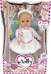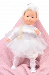 La jolie poupée Bambolina Molly ballerine ravira toute petite amatrice de danse. Elle a des yeux dormeurs, de longs cheveux et porte une magnifique tenue de ballet. Elle peut jouer 3 chansons et, grâce à sa taille de 40 cm, elle tient parfaitement même dans les petites mains. Convient à partir de 3 ans, piles LR44 incluses.
