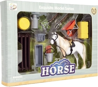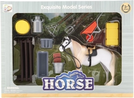 Ce set captivant offre aux enfants une expérience authentique des soins équins. Le cheval blanc avec sa longue crinière et sa queue à coiffer favorise la motricité fine, l’imagination et le lien avec les animaux. La selle et le licol réalistes ajoutent au réalisme et permettent aux enfants de créer leurs propres histoires de ferme.