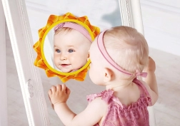 - Amusement multisensoriel : couleurs, textures, sons et miroir pour développer la vue, le toucher et l’ouïe.
