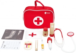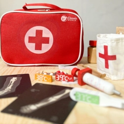 Comprend tous les outils nécessaires pour jouer au médecin, y compris un stéthoscope, un thermomètre et une seringue.