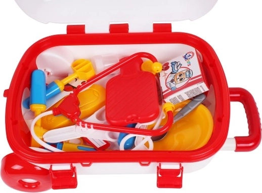 La mallette de docteur sur roulettes est idéale pour les petits médecins qui veulent soigner leurs patients en peluche ou amis joueurs.