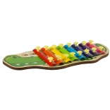 Le coffret contient : xylophone en forme de crocodile, 2 mailloches en bois, carte avec des « accords » simples pour jouer.