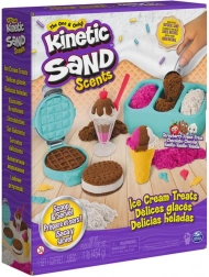 Plongez dans l’univers des douceurs avec le set Kinetic Sand Scents – gourmandises glacées. Ce sable parfumé de qualité suédoise, grâce à sa texture unique, se façonne facilement, ne colle pas aux mains et ne sèche pas, pour que les enfants puissent jouer encore et encore. À l’aide des moules et des outils, ils préparent aisément des boules, sandwichs, coupes et gaufres.