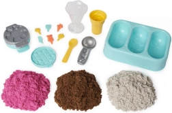 La composition spéciale de Kinetic Sand se presse, se coupe et se moule facilement – idéale pour des boules de glace et des desserts réalistes.