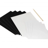 4 x feuilles de papier, 1 x stylet, 1 x pochoir, 4 x supports