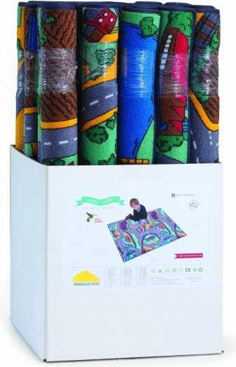 Le tapis de jeu est un bel accessoire pour toute chambre d’enfant, avec une carte des rues et des bâtiments, qui stimule la fantaisie et l’imagination des enfants.