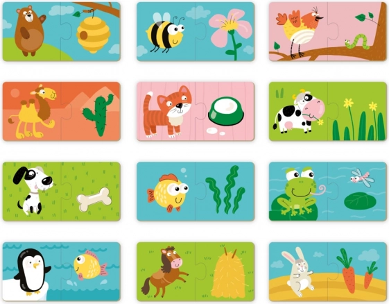 Le puzzle pour enfants « Que mangent les animaux ? » apprend aux plus petits à associer correctement les animaux à leurs friandises préférées. Grâce à son système simple de 12 paires, les enfants entraînent l’observation, la concentration et la coordination œil-main, tout en apprenant de nouveaux concepts de manière ludique.