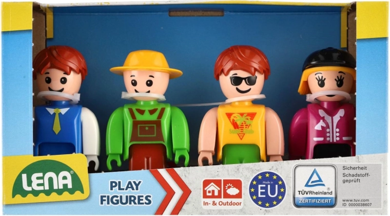 Le set de figurines LENA vert apporte un jeu riche et développe l’imagination des enfants. Quatre personnages robustes, faciles à tenir par les petites mains, dotés de membres articulés, parfaits pour le jeu autonome ou pour compléter des constructions et des véhicules.