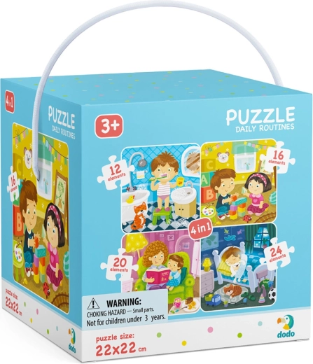 Puzzle pour enfants de la marque DODO avec des images des activités quotidiennes. Dimension du puzzle une fois assemblé : 22×22 cm. Âge : 3+.