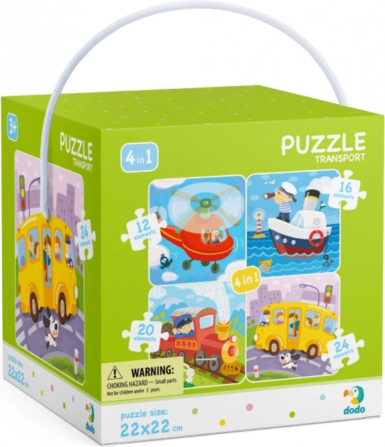 Découvrez un puzzle progressif et ludique sur le thème des moyens de transport de la marque DODO. Le coffret contient 4 puzzles de difficulté croissante avec 12, 16, 20 et 24 pièces, idéal pour développer la patience, la logique et la motricité fine des enfants. Chaque puzzle assemblé mesure environ 22 × 22 cm.