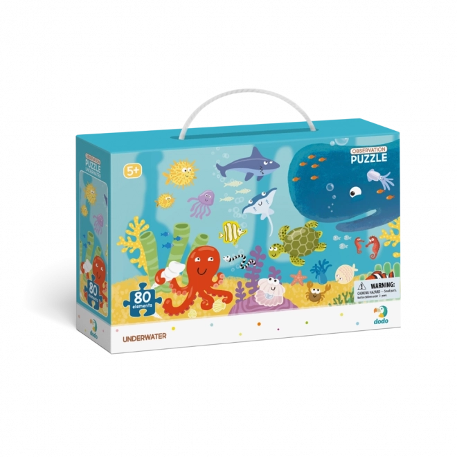 Amusant puzzle pour enfants sur le thème de la mer, proposant non seulement l’assemblage, mais aussi un jeu de cherche et trouve. Une fois le puzzle terminé, retrouvez sur l’image tous les animaux marins. Illustrations colorées, 80 pièces et développement du vocabulaire, de la mémoire et de la concentration font de ce jeu un choix idéal pour les enfants dès 5 ans.
