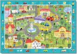 Puzzle éducatif et ludique sur le thème de la ville, qui, une fois assemblé, propose un jeu interactif de cherche et trouve. Les enfants découvrent des bâtiments, moyens de transport et éléments urbains, enrichissent leur vocabulaire, mémoire et concentration et profitent d’un moment de jeu partagé. Contient 80 pièces, dimensions une fois assemblé 45 × 31 cm, idéal pour les enfants à partir de 5 ans.