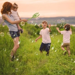 Découvrez l’effet des grandes bulles et l’averse dense de mini bulles – il suffit d’échanger l’anneau. Variabilité maximale du jeu pour chaque enfant.