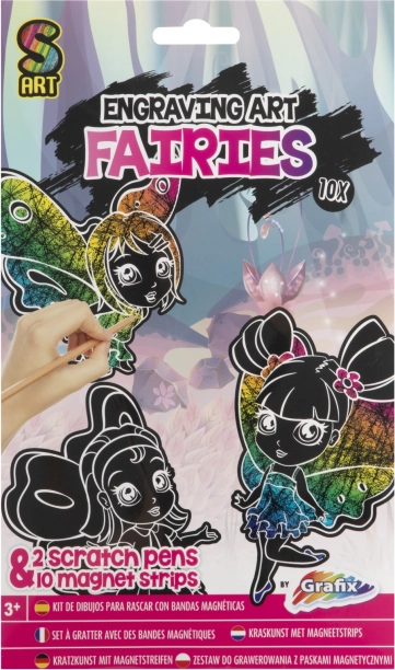 Découvrez un kit créatif pour enfants et adultes : des magnets à gratter avec des motifs de fées et dinosaures. Le coffret contient 10 magnets et 2 grattoirs pour créer facilement. Les magnets finis se fixent sur toute surface métallique – réfrigérateur, tableau magnétique ou casier.