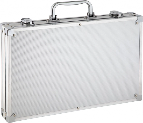 Cette mallette en métal est équipée d’une poignée solide et de fermetures sécurisées, permettant un transport facile et une organisation sûre de toutes les fournitures.